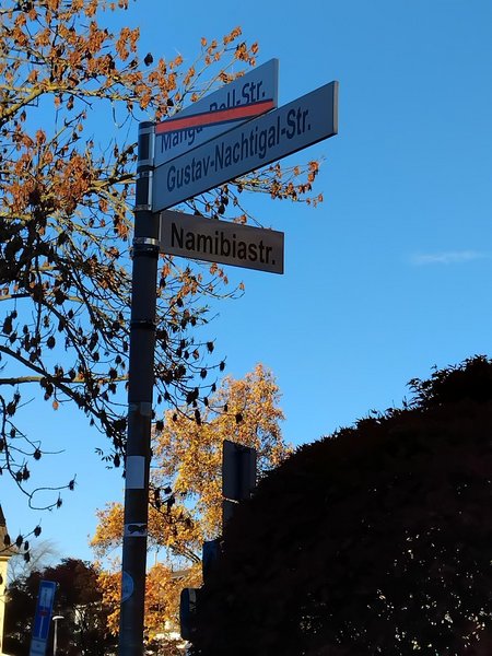 Bis zum 15.09.2026 werden die Manga-Bell-Straßenschilder noch mit einem roten Querbalken versehen sein. Fast ein Jahr. So sind die Regeln. Danach kommt der Querbalken auf das alte Straßenschild.