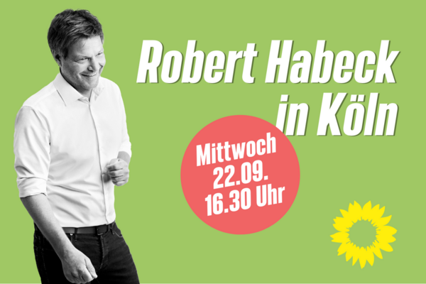 15.09.21 - Der Co-Bundesvorsitzende von BÜNDNIS 90/DIE GRÜNEN, Robert Habeck, wird nur vier Tage vor dem entscheidenden Wahlsonntag in Köln zu Gast sein. Kommt am Mittwoch, den 22. September, um 16.30 Uhr auf den Heumarkt und seid dabei!