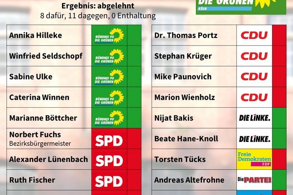 19.10.21 - Unsere Fraktion hat in der Sitzung am 06.09.2021 einen Antrag zur Verkehrswende in Köln-Mülheim mit dem Titel "Sofortprogramm Klimanotstand ernstnehmen – Verkehrswende in Köln-Mülheim anpacken" gestellt (Link). Von den fünf Punkten wurden nur zwei verabschiedet: Einerseits wurde beschlossen, noch 2021 ein Radverkehrskonzept zu erarbeiten und Fahrradstraßen einzurichten. Zum Zweiten wurde beschlossen, noch 2021 mit der Feinplanung der Radpendelroute Leverkusen/Köln zu beginnen. Wie die anderen Punkte abglehnt wurden, könnt ihr der Grafik (unten) entnehmen. Dazu gehörten Radwege auf beiden…