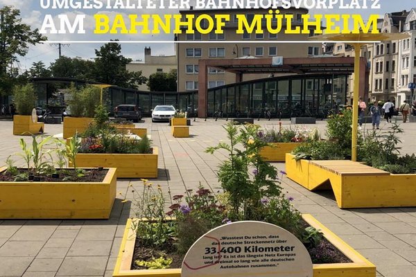 22.07.20 - Habt ihr es schon bemerkt? Auf dem Bahnhofsvorplatz in Mülheim hat sich etwas getan! Mit gelben Möbeln, Blumenkästen und Sonnenschirmen soll der Platz, der im Rahmen der Smart-City Partnerschaft zwischen Stadt Köln, Deutsche Bahn und Nahverkehr Rheinland umgestaltet wurde, zu einem Treffpunkt und Begegnungsort im Veedel werden. In einem dreimonatigen Pilotprojekt testet die Deutsche Bahn hier neue Konzepte um die Aufenthaltsqualität an Bahnhöfen zu verbessern. Auch zahlreiche Veranstaltungen von Open-Air-Kino bis Kochabend sind geplant. Wir freuen uns über diese Initiative in Mülheim…