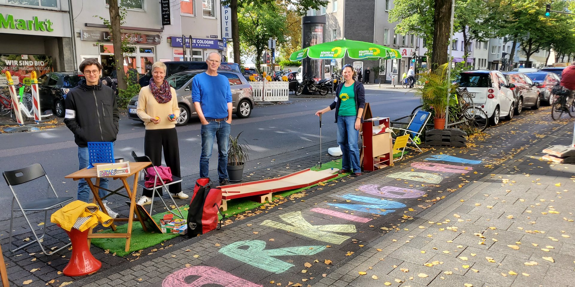 Köln, 26. September 2022 (Bündnis 90/ DIE GRÜNEN Ortsverband Köln Lindenthal) - Anlässlich des internationalen "Parking Day" am vergangenen Freitag fanden sich Mitglieder der GRÜNEN in Lindenthal zusammen, um für eine Umwidmung von Parkplätzen zu demonstrieren. Autos nehmen insbesondere auf der Dürener Straße viel Raum in Anspruch. Dieser Platz kann auch anderen und vor allem nachhaltigeren Nutzungskonzepten für Anwohner*innen und Natur zugeführt werden. Deshalb wurden zwei Parkplätze für einen Tag in einen gemütlichen Ort mit Wohnzimmeratmosphäre umgewandelt. Bei Kaffee und Kuchen wurde mit Anwohner*innen über das große Veränderungspotential diskutieren. Vorschläge zur Reduktion von Lärm, Emissionen und Autoverkehr wurden ebenso diskutiert wie die Belange der ansässigen Geschäfte. Im Spannungsfeld zwischen Fuß-, Rad- und Autoverkehr bleibt die Mobilitätswende ein Thema mit Konfliktpotenzial. Nur im Austausch mit allen Interessengruppen haben neue Nutzungskonzepte für Parkplätze eine Zukunft.