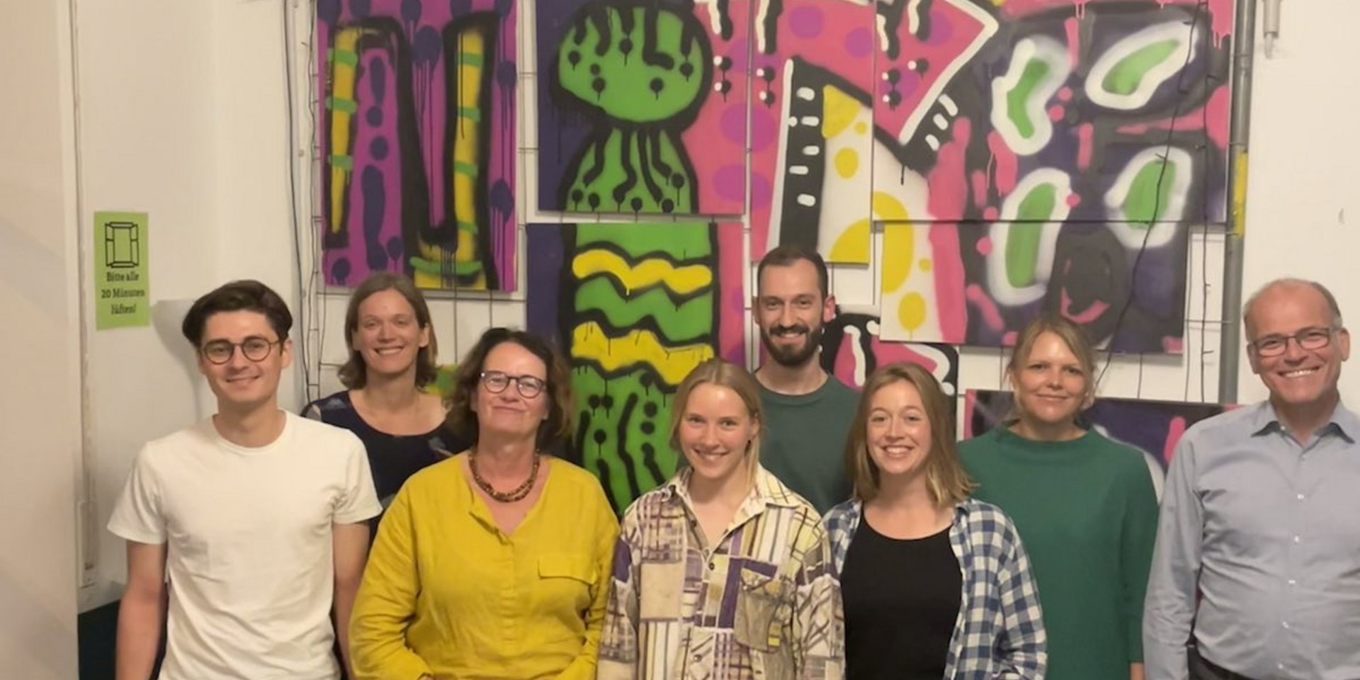 Im Bild der neue Vorstand der GRÜNEN in Lindenthal (v.l.n.r.) Maximilian Humpesch, Ulla Weinberg, Mechthild Böll, Linda Müller, Emanuel Bruckisch, Luise Zühl, Sabrina Allum, Jörg Nußbaumer.