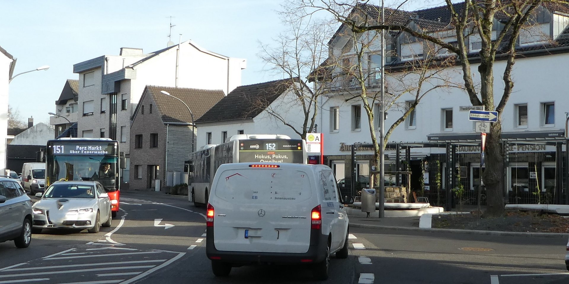 Im Dezember tauchte in Eil, Frankfurter Str. eine neue KVB Bushaltestelle auf. Vermutete man zunächst einen Baustellen-Behelf, war schnell klar: das soll eine neue Bushaltestelle sein. Das Ansinnen der KVB, der Bevölkerung mehr erreichbare Haltestellen anzubieten, ist grundsätzlich gut, genauso wie die Berücksichtigung dessen, dass Haltestellen ohne Haltebuchten sicherer seien.