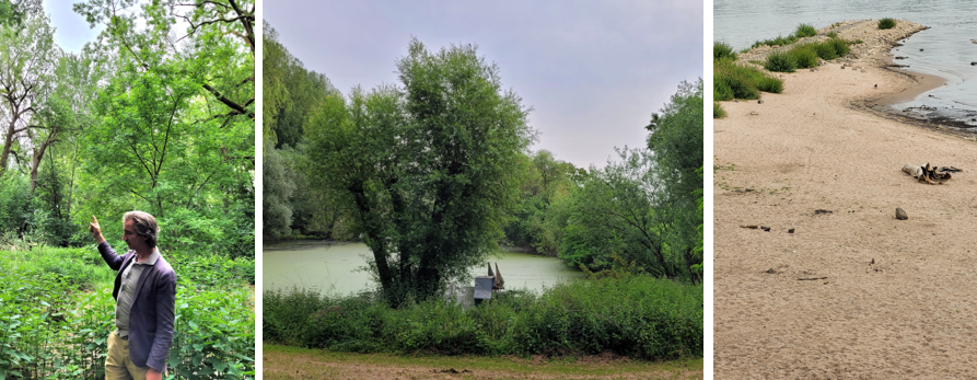 Bei einem Rundgang durch den Langeler Auwald, für dessen Erweiterung wegen des hohen naturschutzfachlichen Entwicklungspotentials die Stadt Köln Vorschläge entwickelt, machte uns Holger Sticht, Vorsitzender des BUND NRW mit Einzelheiten vertraut. In der geplanten Erweiterungsfläche des Naturschutzgebietes verlandet der letzte Rest des ehemaligen Rheinarms, was im Zuge einer Renaturierung durch Anbindung an den Rhein verhindert würde. Am Rhein entlang soll die alte Allee erhalten und an der Ecke Frongasse der „Strand“ für die Erholungssuchenden zugänglich bleiben. Alle übrigen Trockenkiesbereiche, die schützenswerte Arten wie den Flussregenpfeifer beherbergen, müssen Schutzzonen werden.
